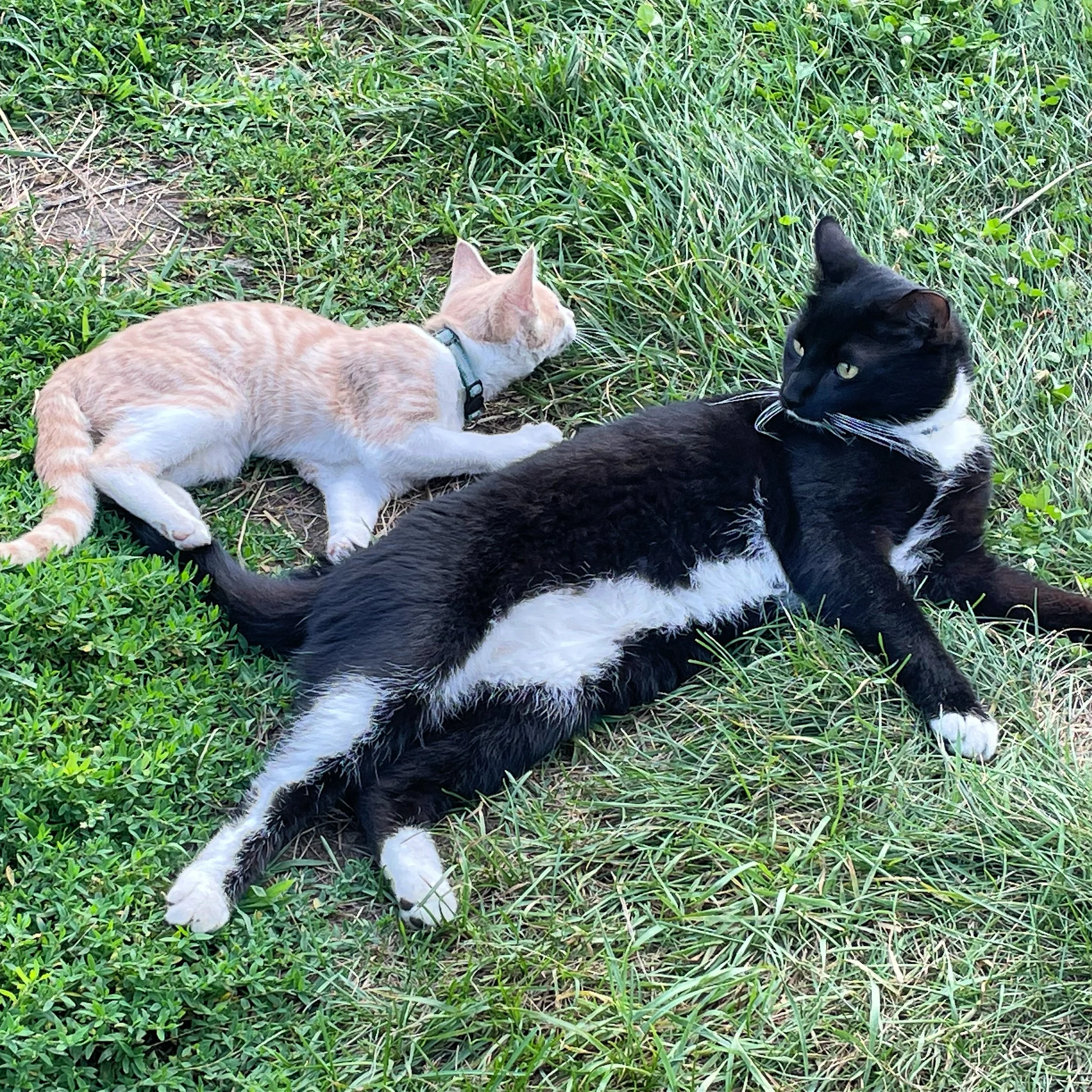 Jake enjoying a summer afternoon with the barn cats.
