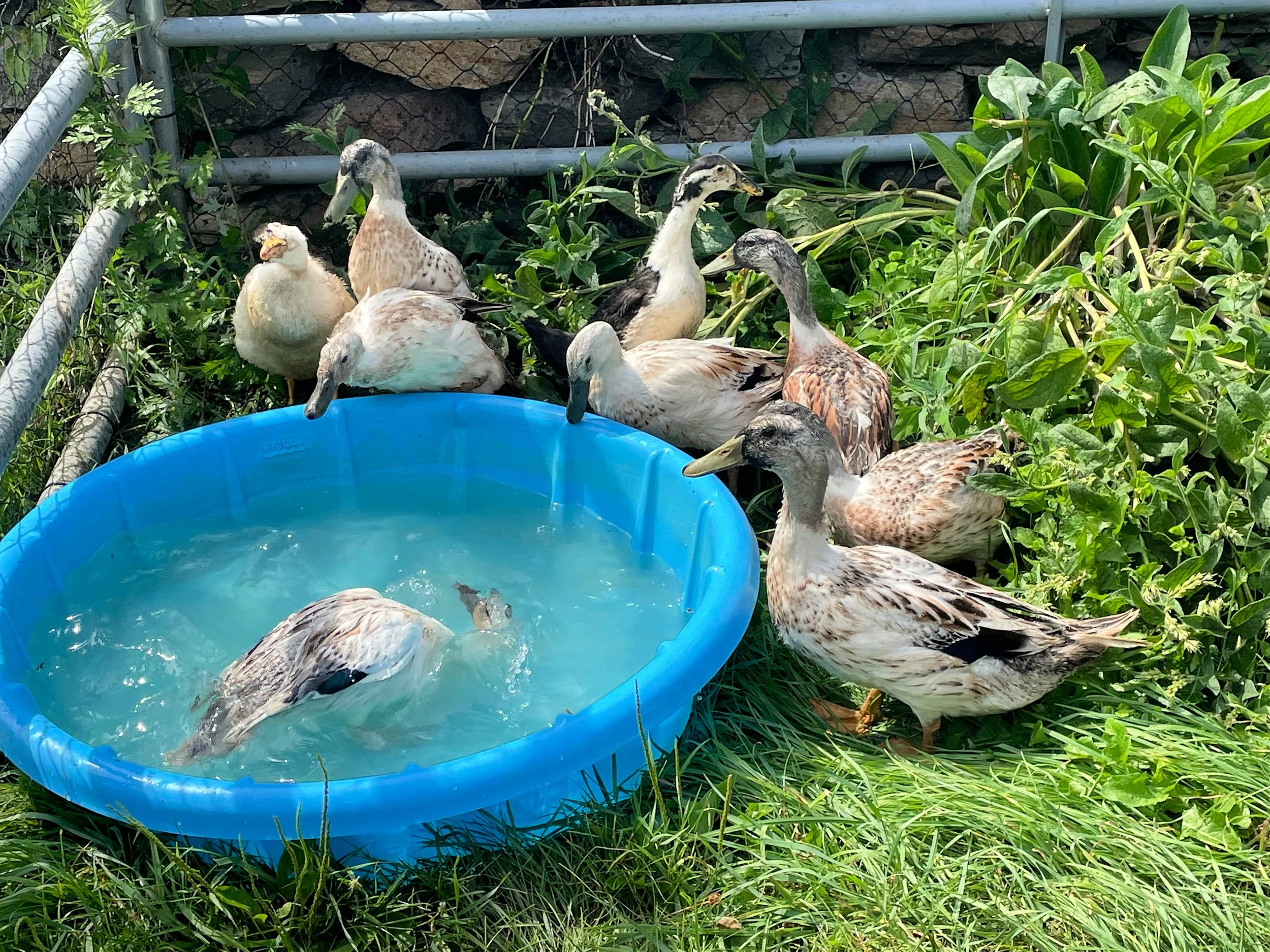 We tried to hatch some ducklings earlier this summer, but only a couple made it to the other side of the shell. So we purchased a handful more from a local breeder. Kalina calls them her “children” and makes sure they have a clean pool and plenty of treats at all times.